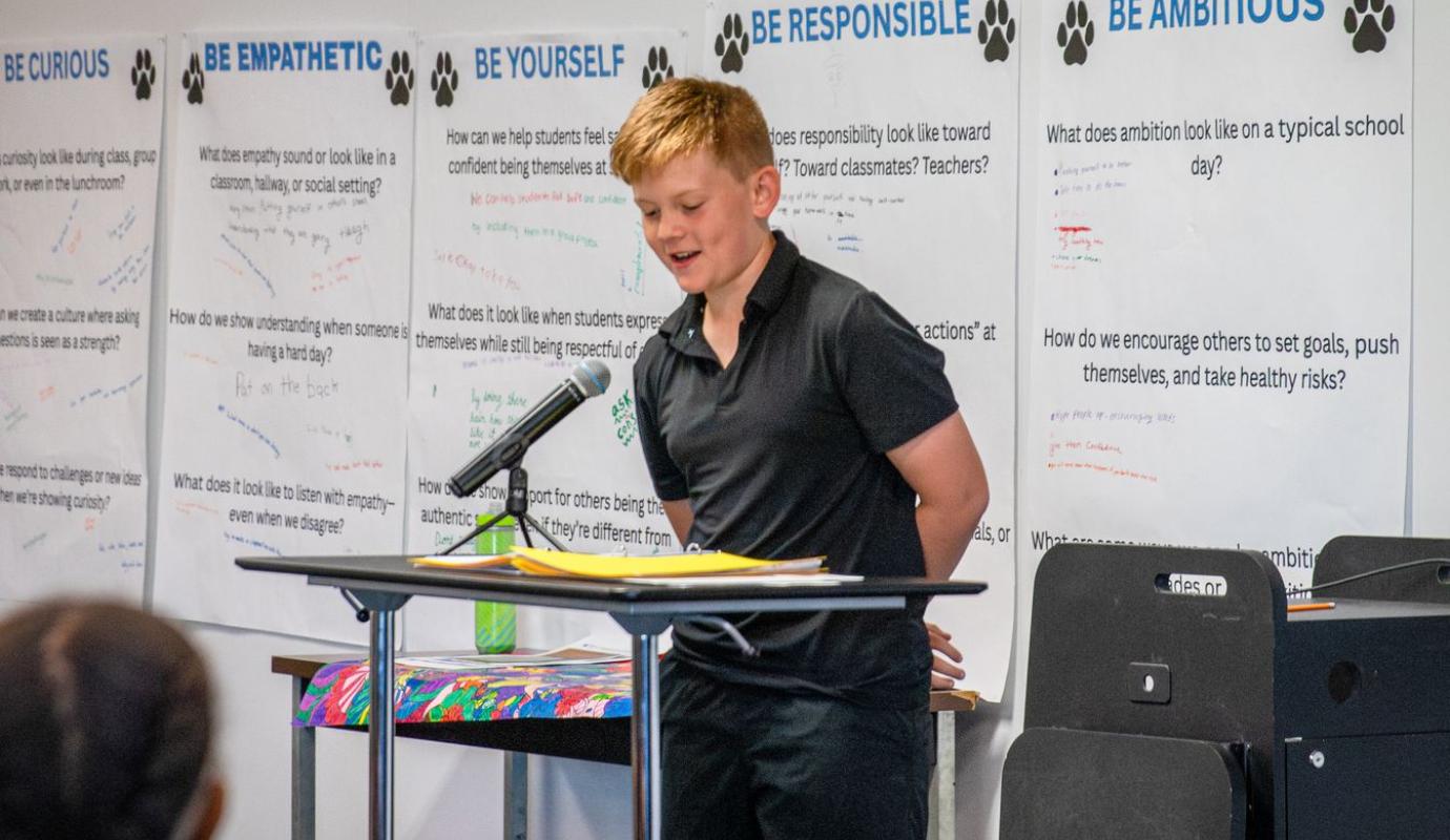 The room buzzed with nervous excitement as 6th graders prepared to share their own original poems. One by one, they stepped up to the mic, voices shaking at first, then growing stronger, and soon, the Middle School Poetry Slam was in full swing.