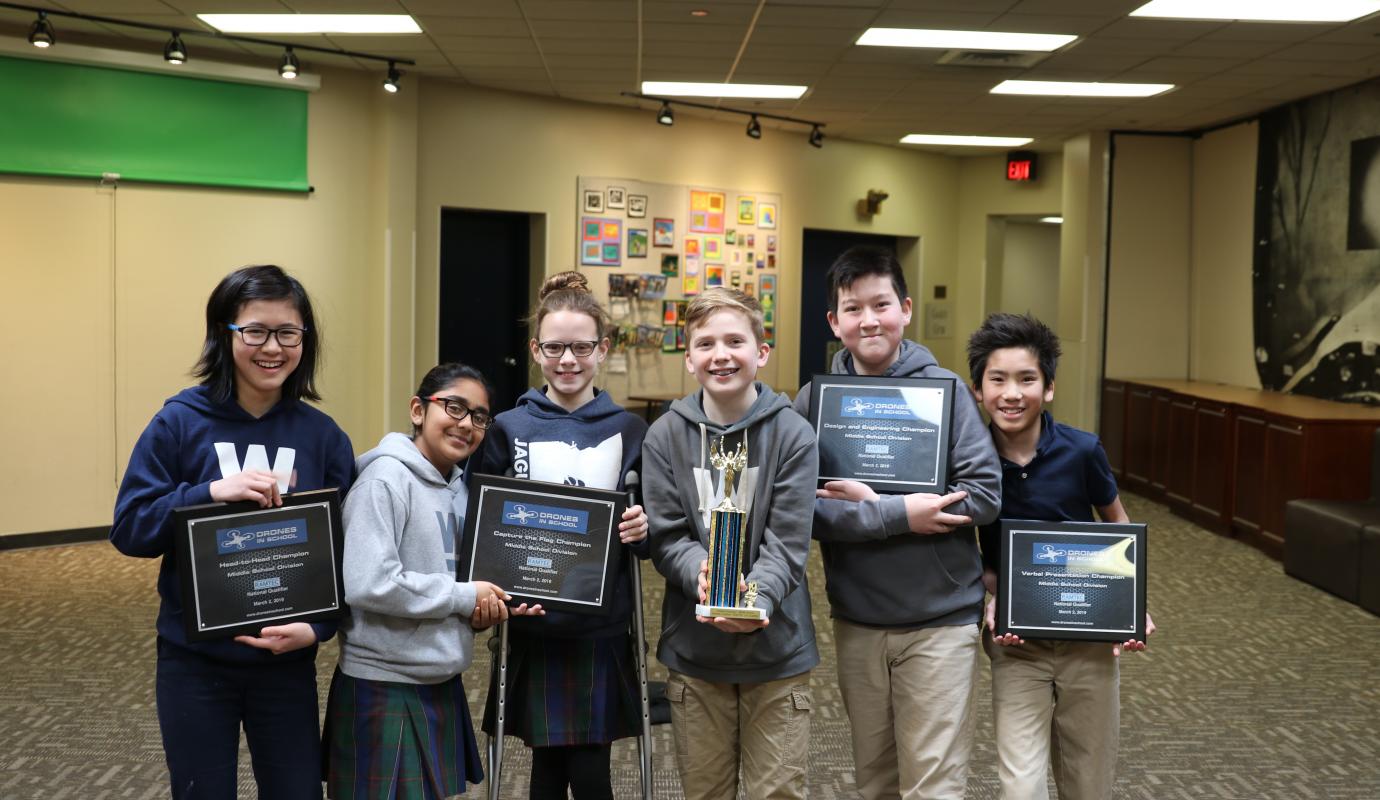 During the RAMTEC competition, teams were judged on: portfolio & booth, design & engineering, verbal presentation, head-to-head, and capture the flag. In the middle school division, the Jags were national qualifiers in 4 of the 5 categories and won the Overall Champion trophy for Middle School Drones in School RAMTEC U.S. Qualifier.