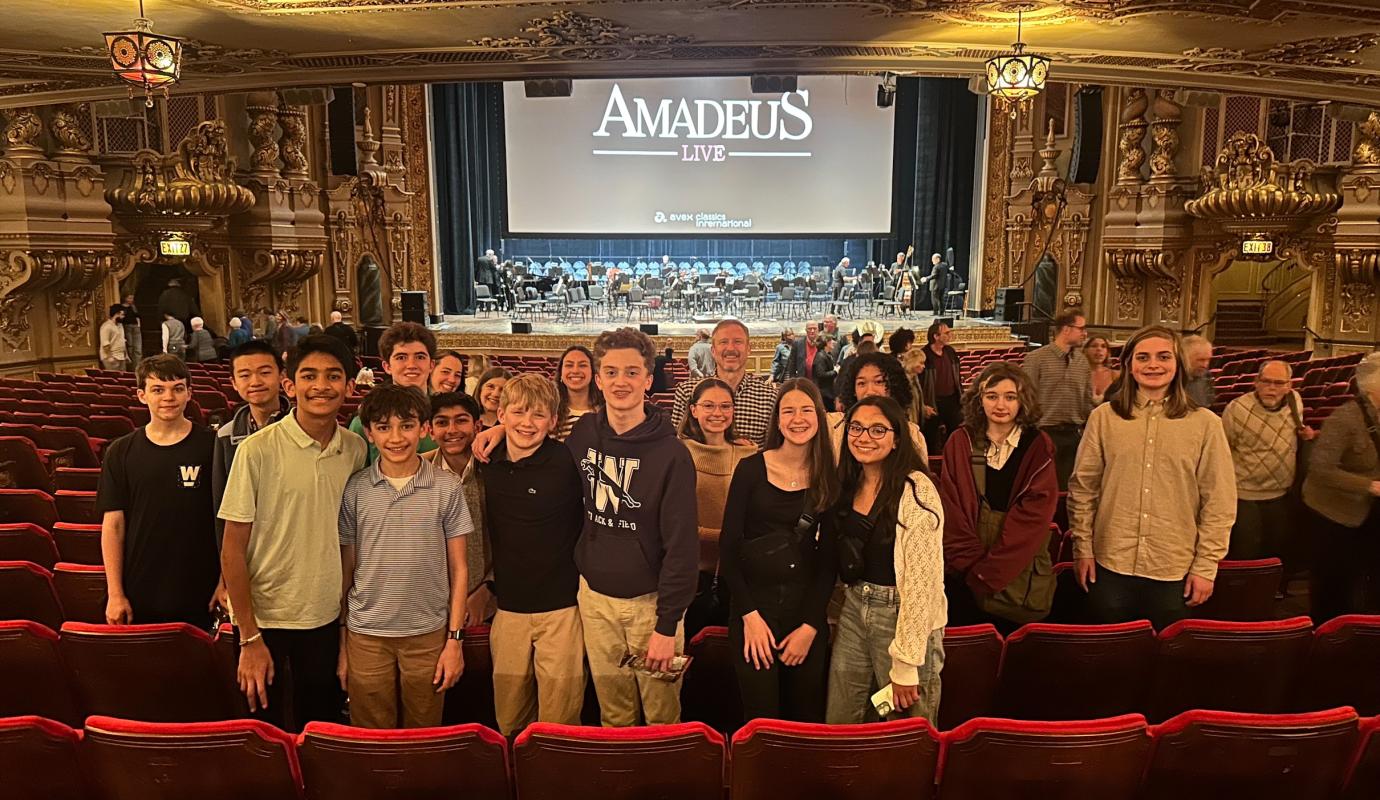 Nearly forty Wellington students, parents, and teachers filled seats at the Ohio Theatre for a special performance of "Amadeus," accompanied live by the Columbus Symphony and Choir. Watching the film on the big screen while the orchestra performed Mozart’s music in real time created a powerful experience that felt much closer to the spirit of the story itself. The music that drove the rivalry between Mozart and Salieri was no longer just part of the background. It filled the entire theatre.