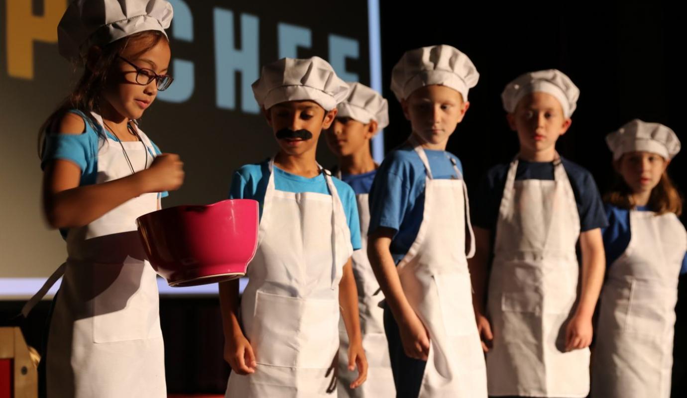 Live performances in lower school help students build confidence while also exploring new forms of creative self-expression. In the recent 3rd grade play, “How to Make an Apple Pie and See the United States,” students had the opportunity to not only learn the ins and outs of theatre production but also showcase everything they had been learning in class. They opened with a song entirely in French before launching into a clever parody of the popular show “Top Chef” in which a team of participants searched across the U.S. for the finest ingredients to make their apple pie. Along the way, facts about the various states were shared along with an impressive display of math facts, also integral in the life of a baker. Check out more photos from the 3rd grade play on Vidigami.