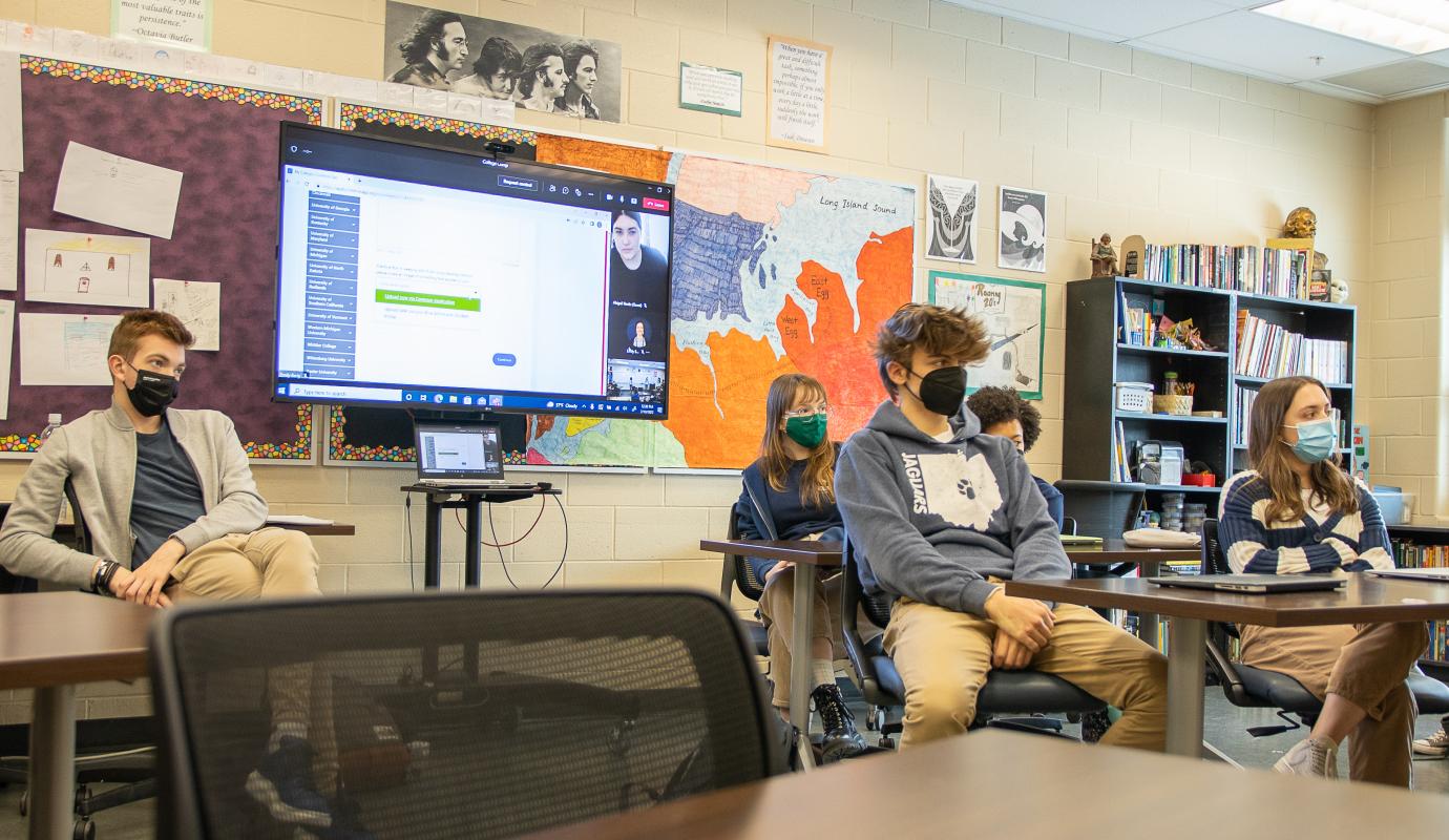 Throughout the second half of junior year, students meet with college counseling on LEAP Days and also begin a cycle of regular, individual meetings. The college counseling team seeks to understand where each student is in their college search process and to meet them where they are. By taking a holistic approach to these conversations, we seek to validate the emotions students might feel as they enter this stage of their lives and to hear what they are bringing with them into their processes. We encourage students to be thoughtful in their pursuits: to select senior schedules and potential college pathways that spark their interests and match their strengths, to consider what they need in their post-secondary experience in order to find fulfillment and thrive, and to thoughtfully structure their individual application process and timeline.
