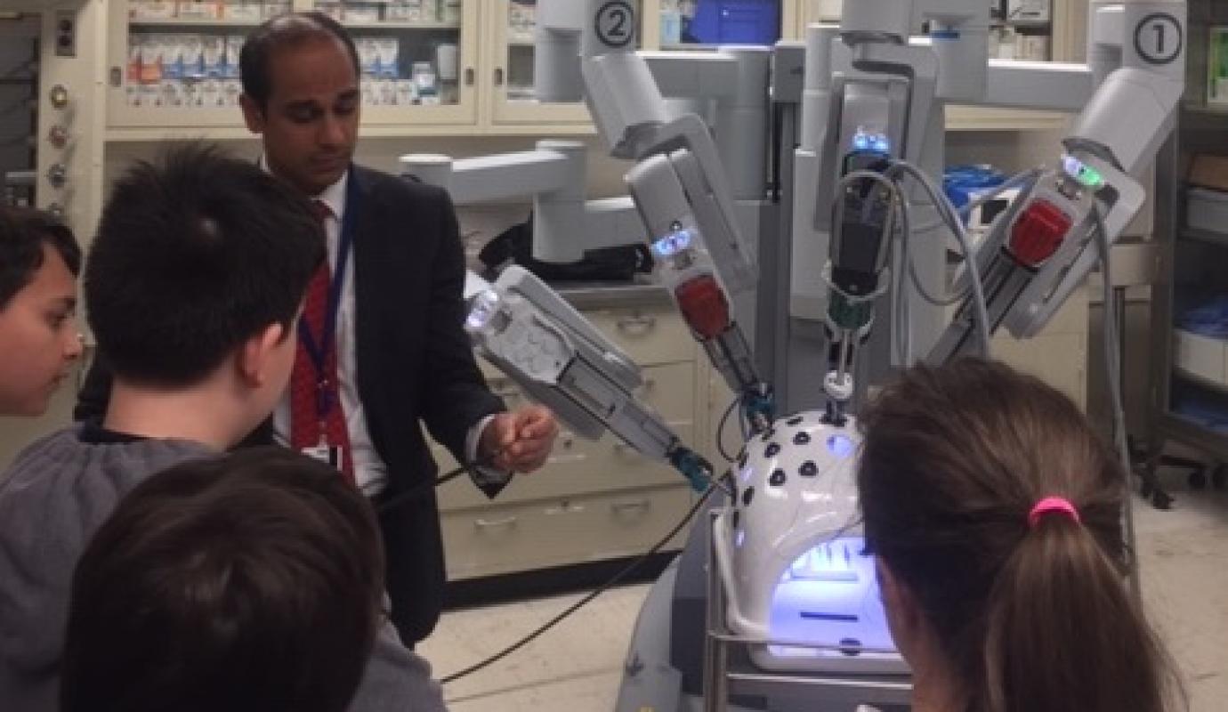Middle schoolers took control of their future on a recent visit to The Ohio State University, where they saw firsthand how robots are helping to make surgery less invasive and then sat in the driver’s seat themselves. Wellington parent and urologic oncologist Dr. Cheryl Lee P ‘26 ‘30 made the trip possible. Four doctors, including Wellington parent Dr. Fara Bellows ‘33, staff members, and graduate students walked middle schools through various stations explaining the anatomy behind urology, the role a surgeon, and the urology department at OSU. Robotic surgery instruments were also available for each student to try using the controls to move pegs around a board, nearly perfectly mimicking the movements of the doctor during surgery.