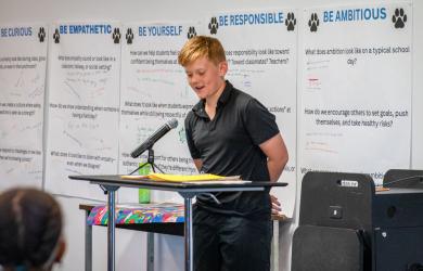 All 63 students took the stage — and many asked to do it again.The room buzzed with nervous excitement as 6th graders prepared to share their own original poems. One by one, they stepped up to the mic...